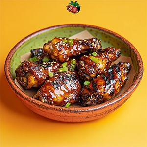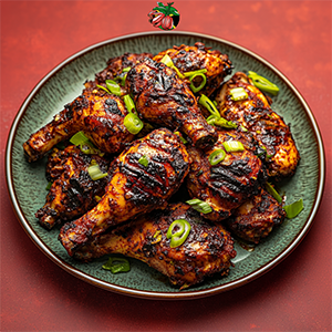 Sticky, tender chicken wings coated in a smoky Caribbean BBQ sauce, offering the perfect balance of sweet and savoury.