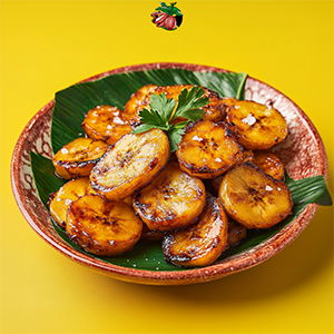 Sweet, Golden plantain slices fried to golden-brown, offering a deliciously soft and flavourful side.