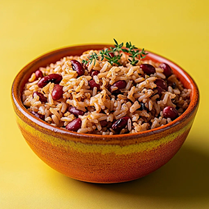 Rice cooked with coconut milk, red kidney beans, and traditional spices for a true taste of the islands.